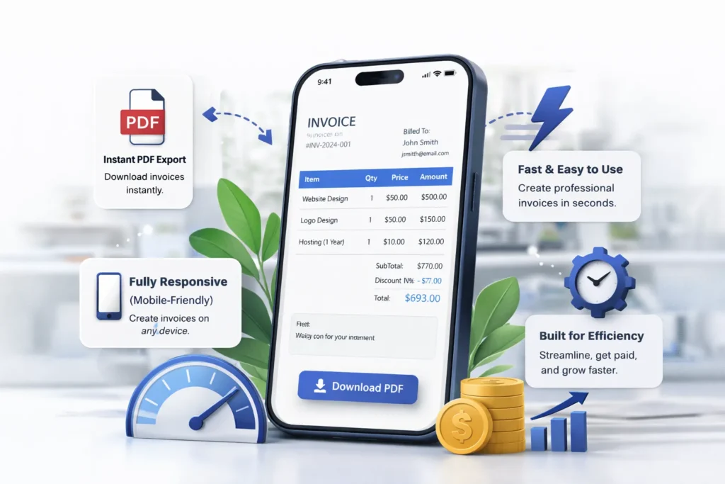 Our tool is more than just a simple invoice Maker — it’s a complete invoice maker designed to make billing fast, accurate, and professional. Whether you want to create invoice online or manage quick client payments, these features make the process effortless.